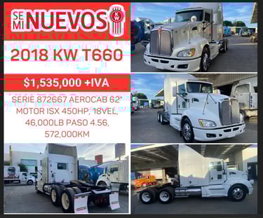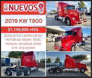 MOTOR CUMMINS ISX, 13 VEL. MANUAL 44,000LB, 72" CAMAROTE CON LITERA, RINES DE ALUMINIO, RODADO 22.5, PEDIMENTO A1 PARA PLACAS ESTATALES
