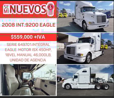 MOTOR CUMMINS ISX, 18 VEL. MANUAL 46,000LB, RINES DE ALUMINIO, RODADO 24.5 UBICADO EN GDL