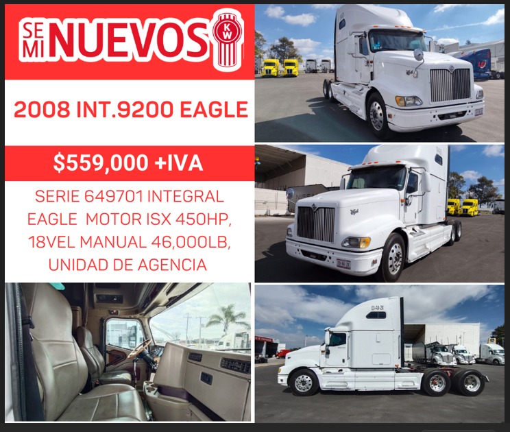 MOTOR ISX 450HP, 10 VEL. MANUAL 44,000LB, RINES DE ALUMINIO, RODADO 22.5, PARA PLACAS FEDERALES, PEDIMENTO VU
